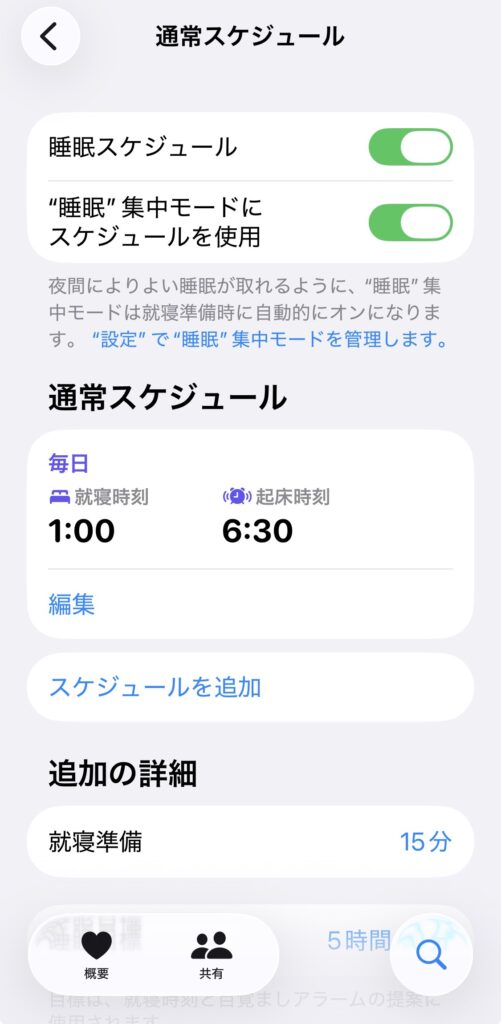 色々調べた結果、もともと「睡眠スケジュール」はオンになっていましたが、「睡眠集中モード」もオンになっていないと計測スタートされないようで、設定した5日後からは問題なく表示されるようになりました!